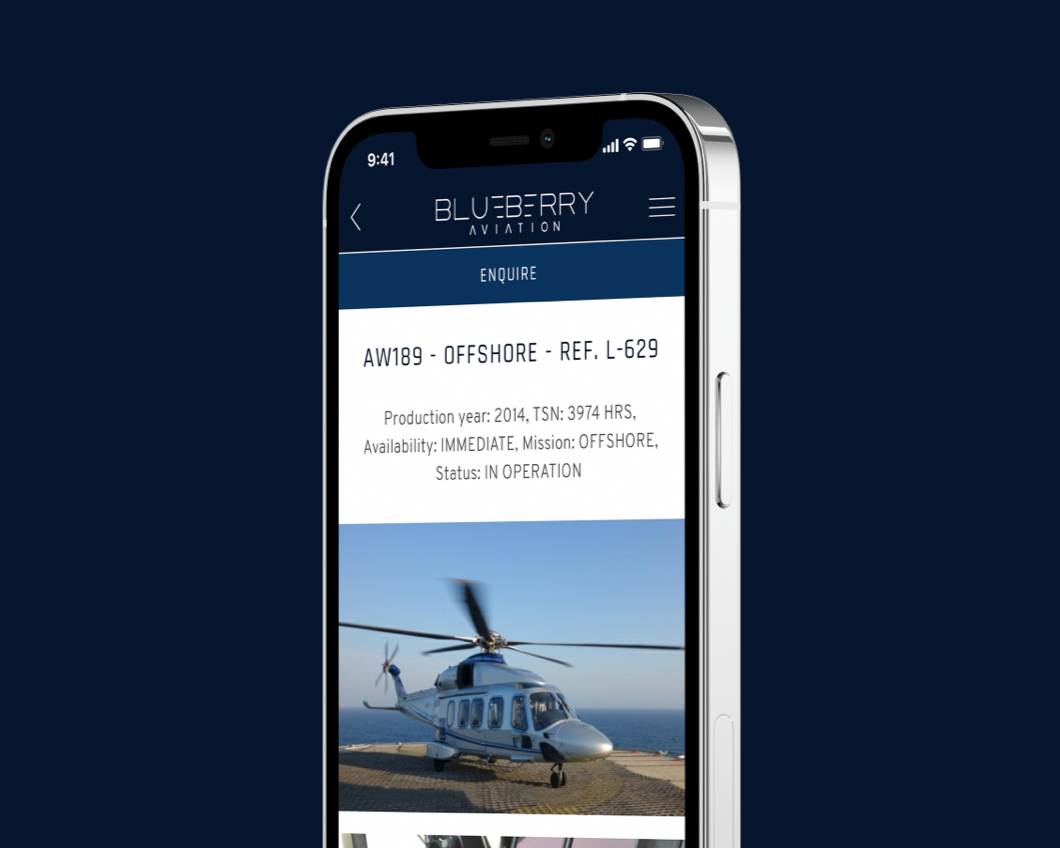 Each listing includes an overview of the aircraft along with a gallery of photos. You can enquire about a specific aircraft directly from the app.